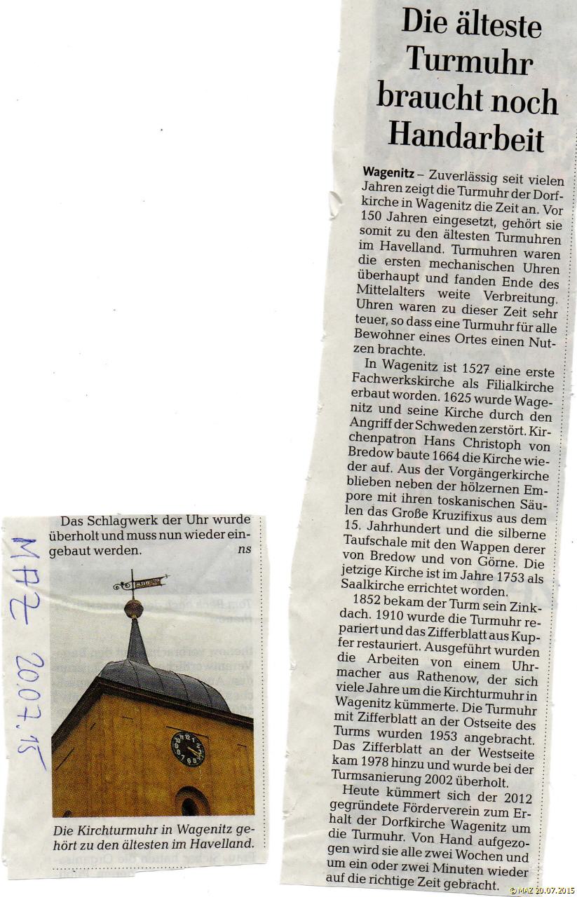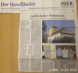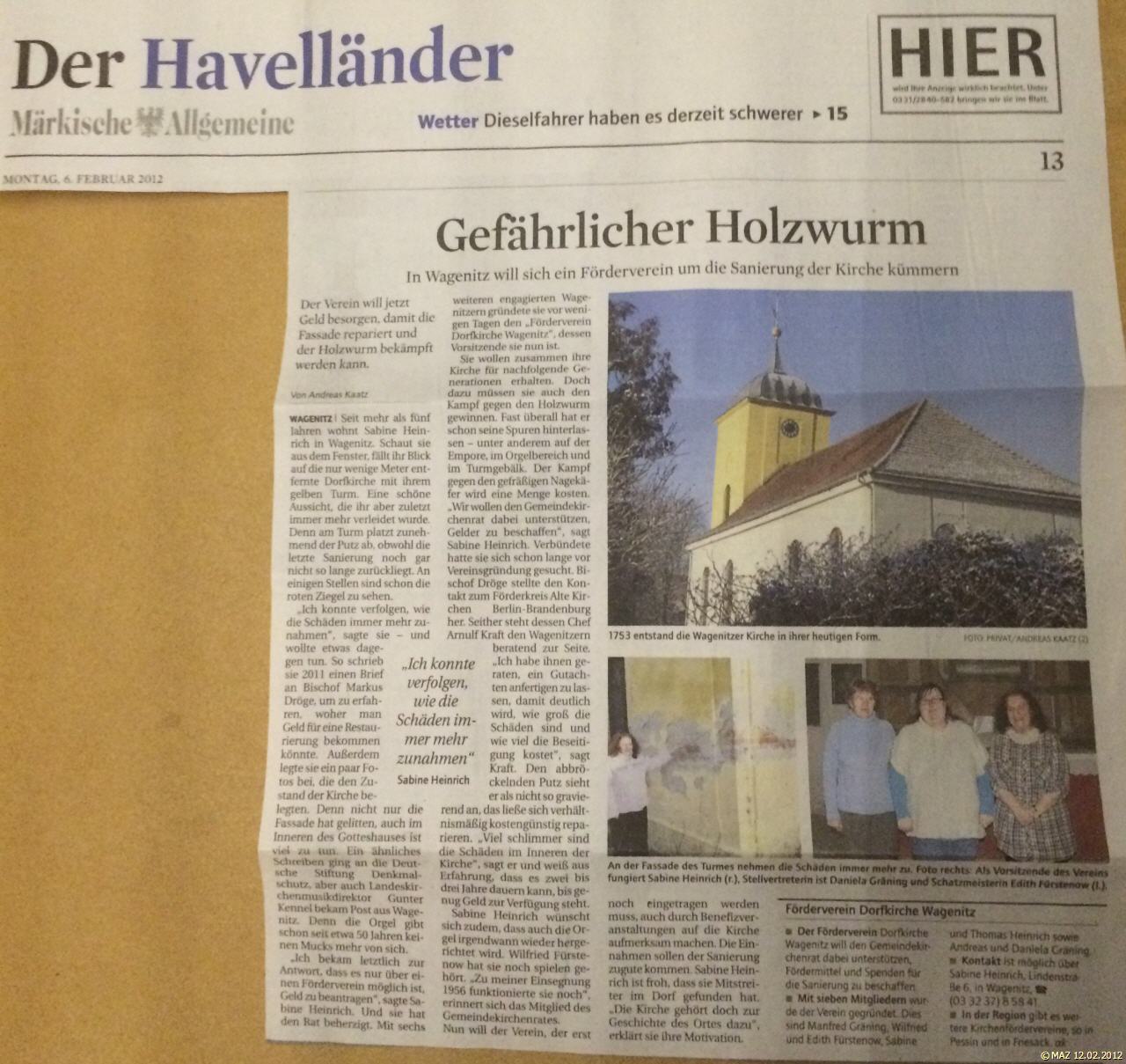 - Sanierung der Wagenitzer Kirche beginnt - MAZ vom 07.01.2017
