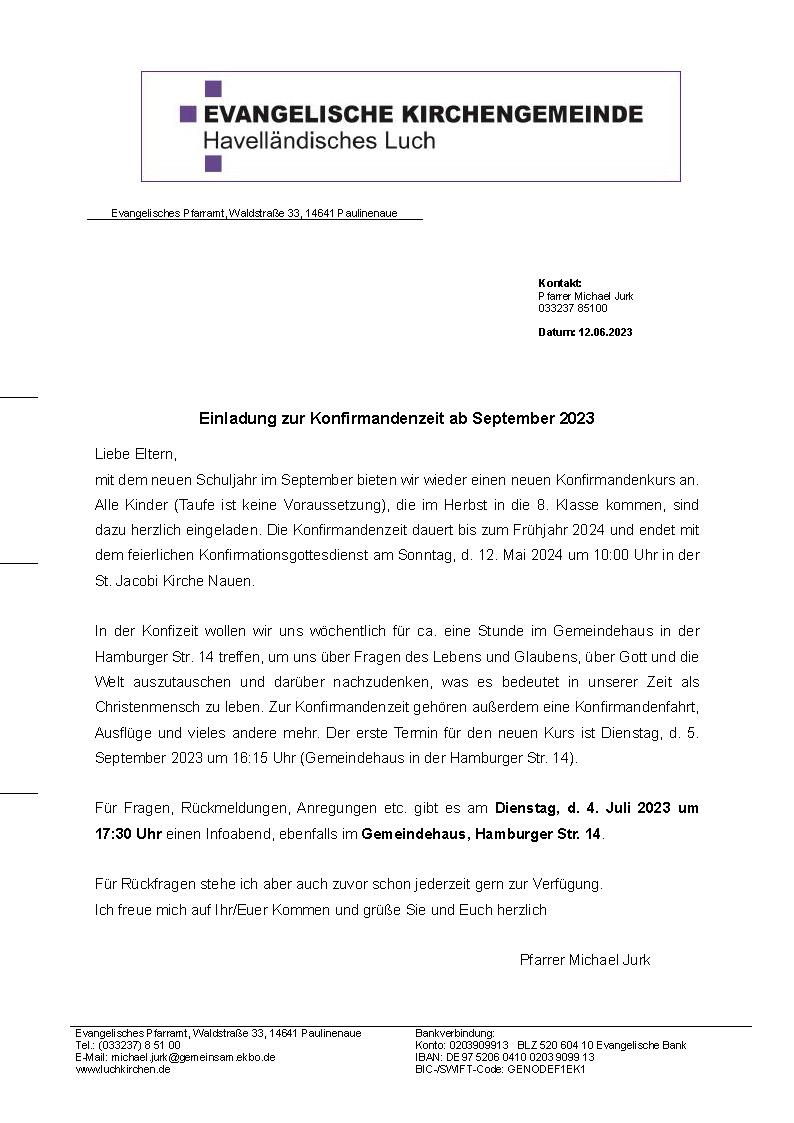 - 30.11.2025, 09:45 Uhr - Andacht zur Eröffnung der GKR-Wahl in Pessin (Im Anschluss an die Andacht findet die Gemeindekirchenratswahl statt. Briefwahlunterlagen können bis 12 Uhr in den Briefwahlkästen der jeweiligen Ortskirche abgegeben werden.)