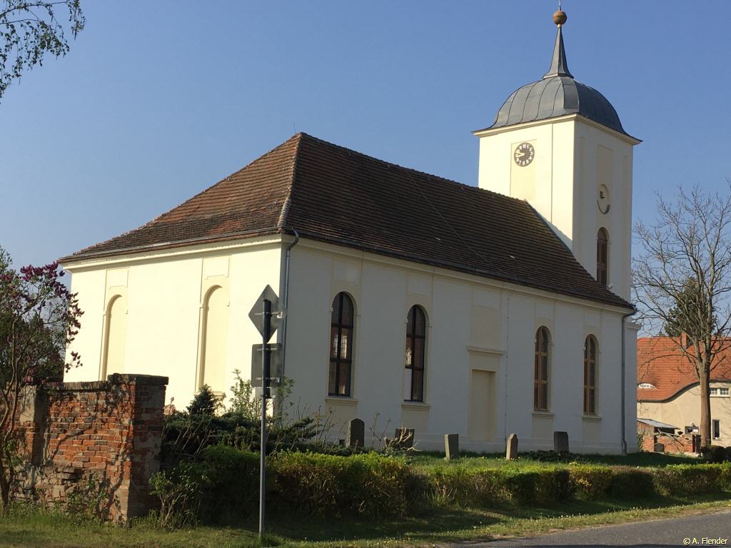 Das denkmalgeschützte Sakralgebäude ist Bestandteil des einzigartigen Dorfangers und bildet mit dem „Schwedenturm„ und der dazwischen liegenden „alten Schmiede„ ein besonderes Ensemble. Der Ortskern wird durch den Schloss- oder Landschaftspark ergänzt. Die Vernetzung mit vergleichbaren Ensembles war Gegenstand des vom Landkreis Havelland initiierten Programms und der Rekultivierung vor der BUGA 2015.